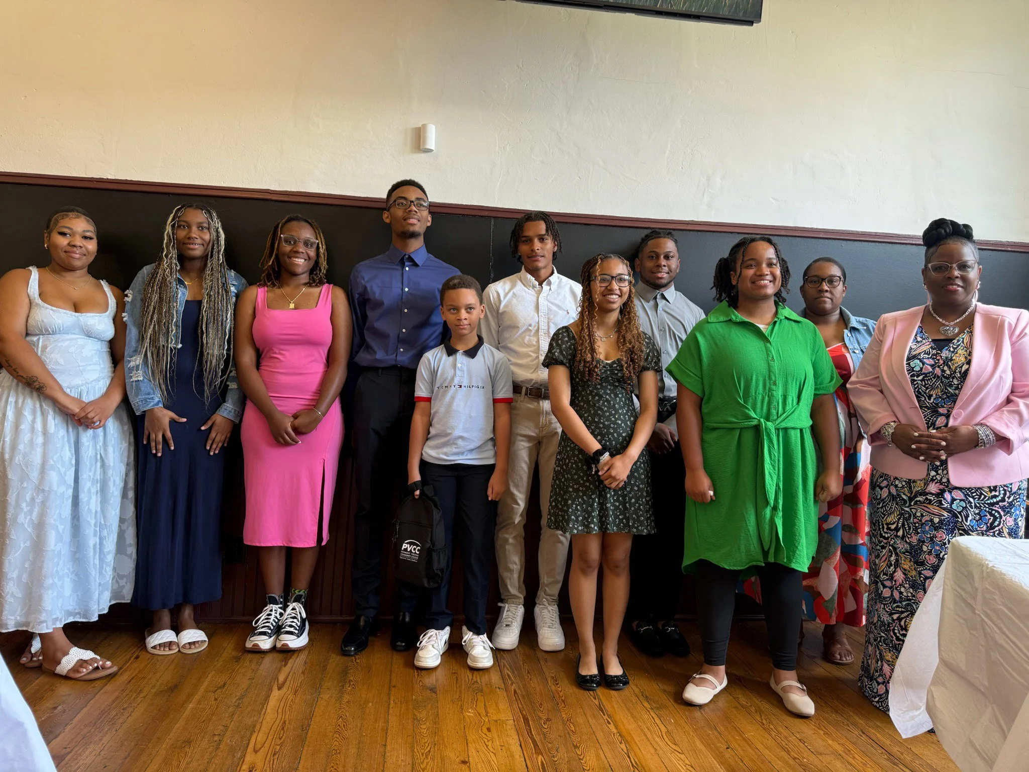The Keswick Heritage Fund board and scholarship selection committee were proud to present scholarships to first time undergraduate college students,students continuing their education and one summer scholar on August 10, 2025 at the awards presentation celebration for scholars and families at St. John Family Life and Fitness Center in Cobham. Pictured above are from left: Mariana Coles, Meyah Gardner, Makaili Christmas, Xander Douglas, Mya Carter, Mia Tinsley, Melissa Booker. and Jayden Vaughan, Darrius Tyler, Raesaun Ellis, Monet Christmas
